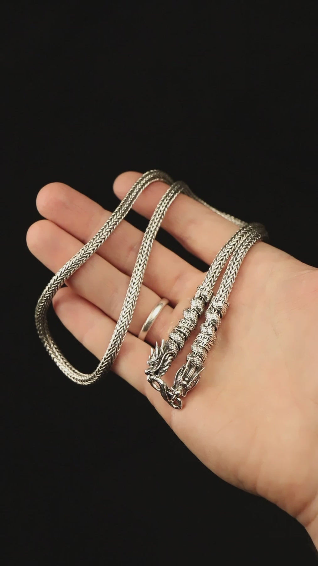 The Draco – Foxtail Silver Necklace is built to feel powerful the moment it hits your neck — a bold foxtail weave finished in mirror-like high polish, made entirely by hand in our workshop.
